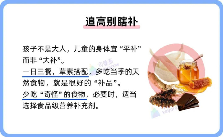盲目给孩子吃人参、海参、冬虫夏草、蜂王浆等各类补品。