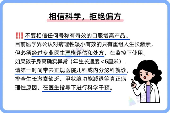绝大多数口服的“增高药”、冲剂、胶囊都是“智商税”!它们要么是营养补充剂(吃了没坏处也没奇效),要么可能非法添加了激素,如性激素或生长激素。
